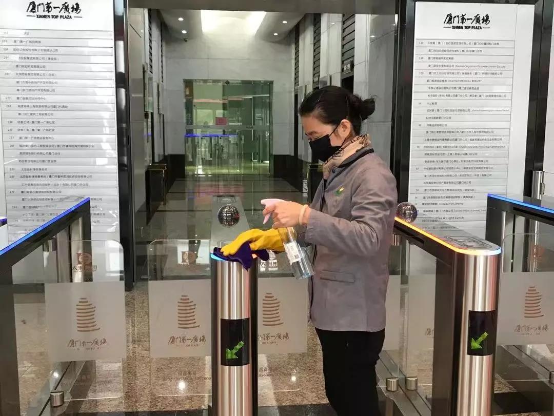 大到每日對進出人員的體溫測量登記,對辦公區(qū)域、大堂、電梯等各個大大小小公共區(qū)域的全面消毒凈化工作,以及嚴格執(zhí)行復(fù)工備案制度、每日報告制度等;小到為客戶提供防控疫情指南以及電梯按鍵用紙、廢棄口罩專用垃圾桶的設(shè)置等;但凡涉及到寫字樓的疫情防控工作,廈門第一廣場物業(yè)服務(wù)中心都分派專人進行管理與追蹤,事無巨細,只為確保每一項防疫工作落實到位,確保盡最大努力為業(yè)戶織就牢固的全方位辦公防疫網(wǎng)。